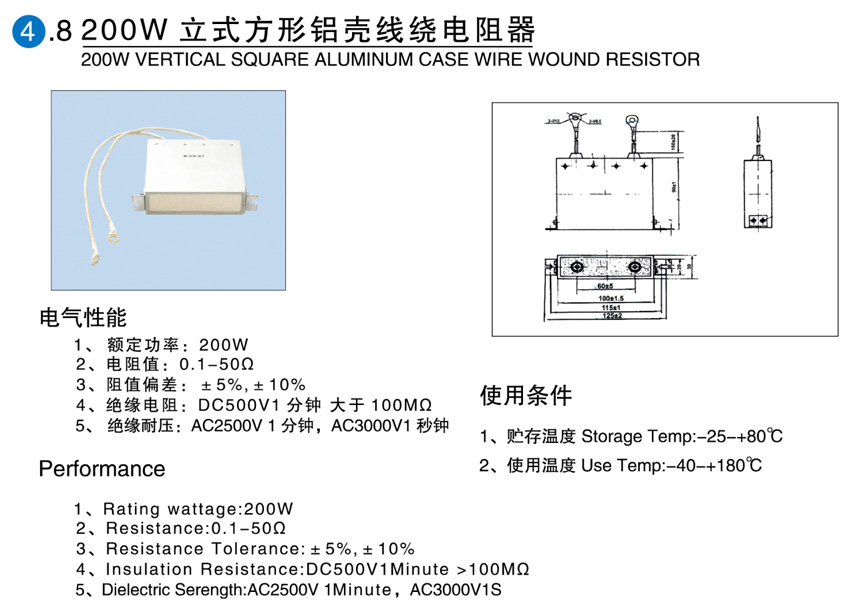 > 200W立式方型铝壳线绕电阻器