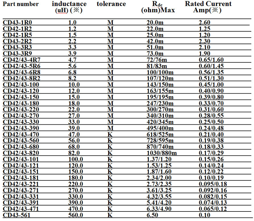※Inductance Test Fr. 100KHz 100mA(HP 4277A) at 20℃(L<10uH时)