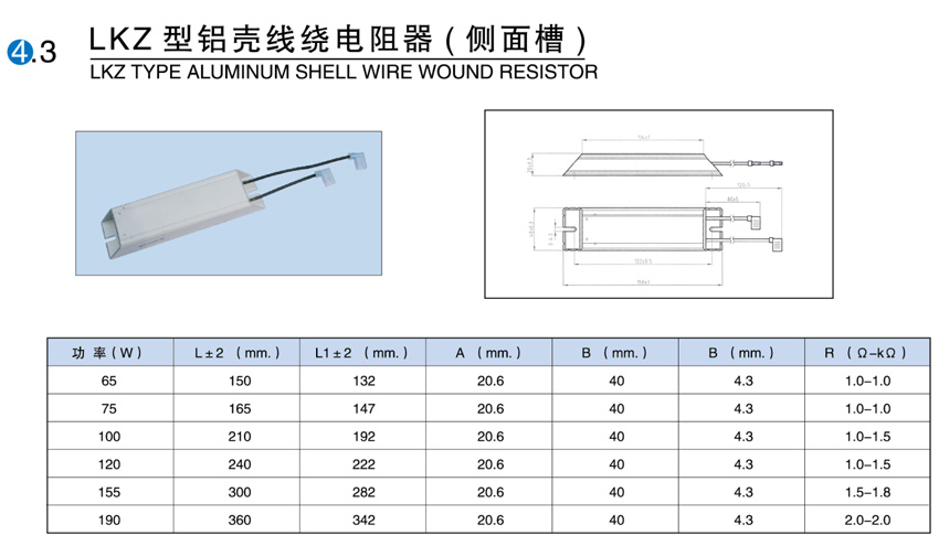 > LKZ型铝壳线绕电阻器(侧面槽)