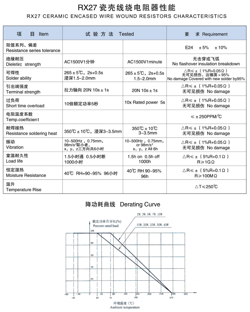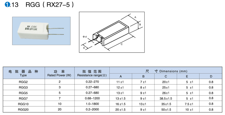 > RGG(RX27-5)陶瓷外壳线绕电阻器