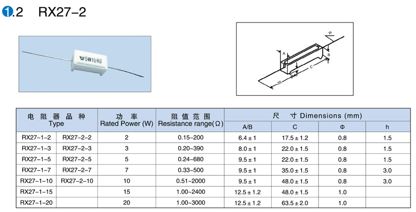 > RX27-2陶瓷外壳线绕电阻器