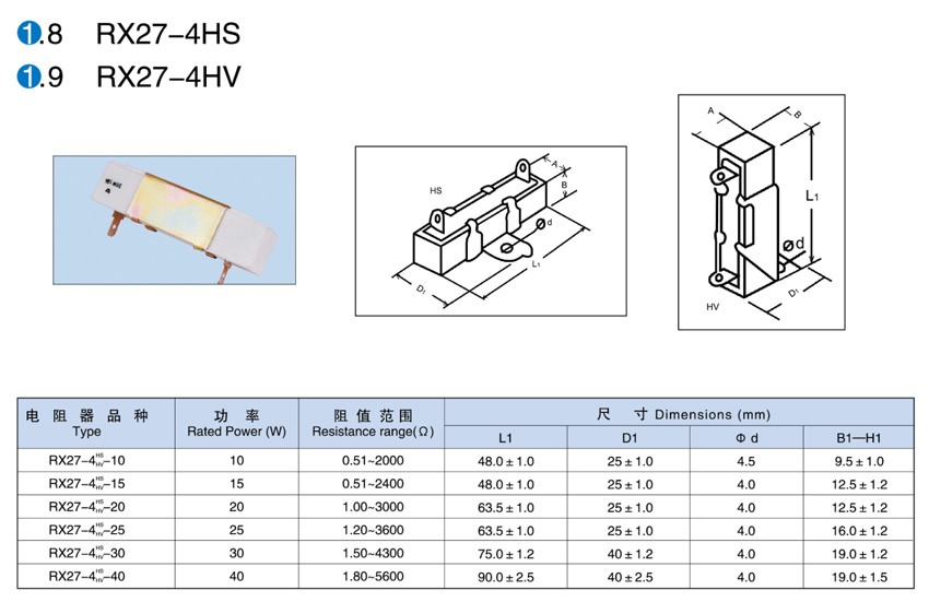 > RX27-4HS / RX27-4HV陶瓷外壳线绕电阻器