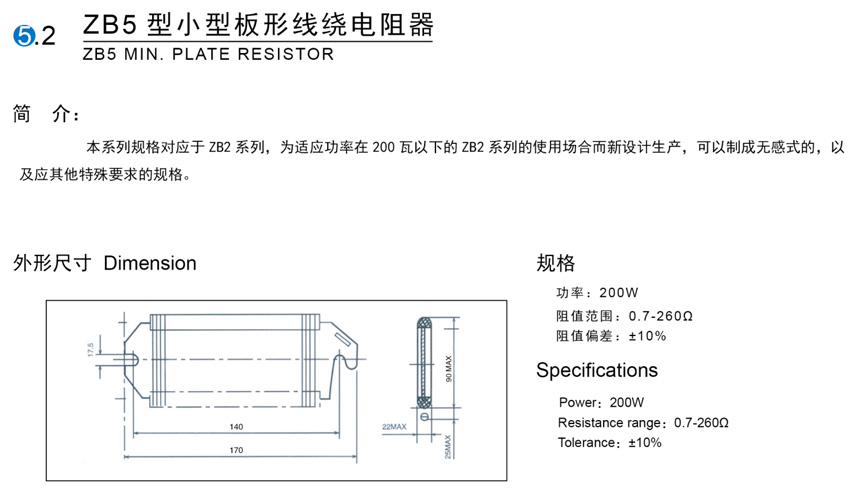 > ZB5型小型板形线绕电阻器