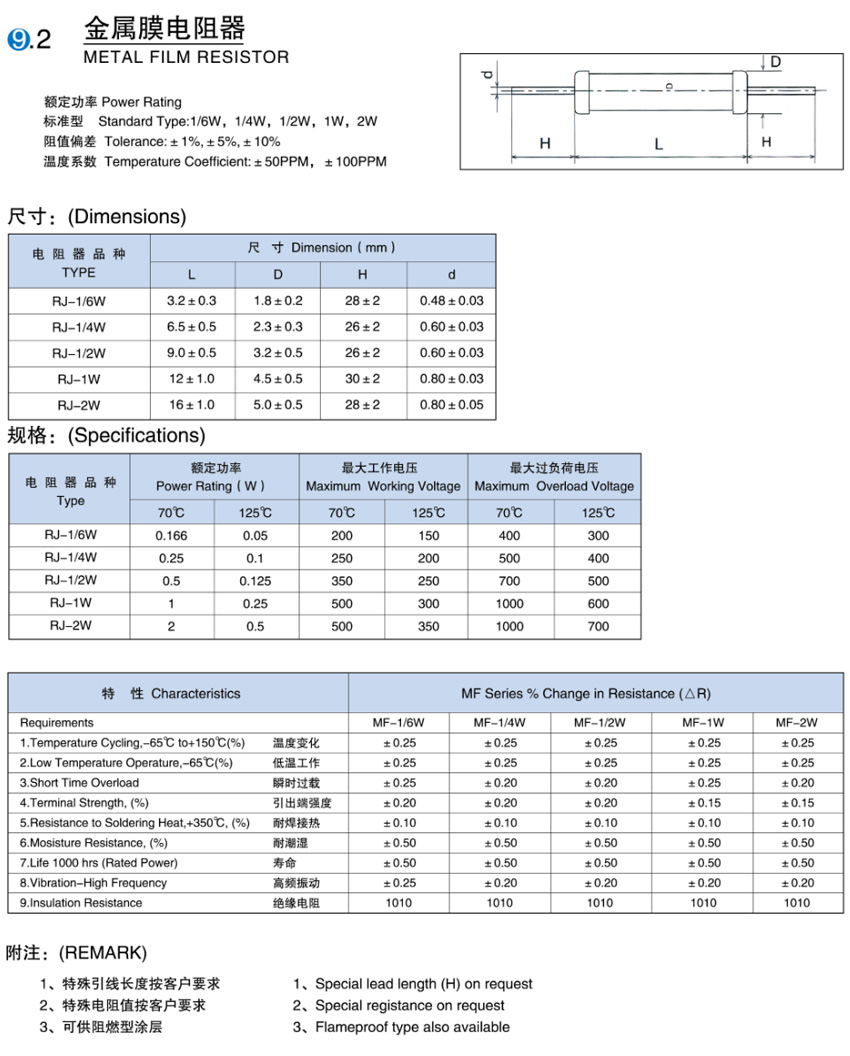 金属膜电阻器