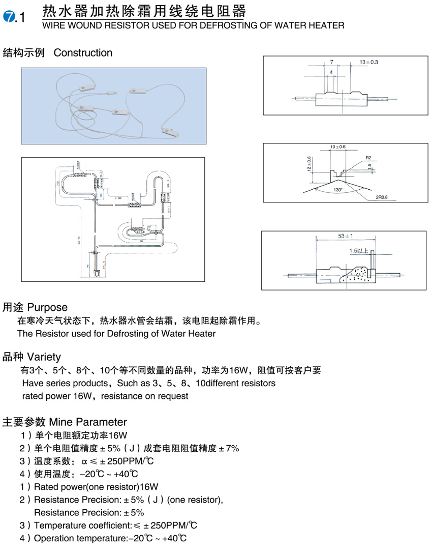 > 热水器加热除霜用线绕电阻器